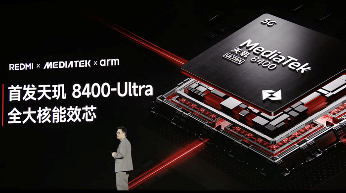 REDMI Turbo 4采用了联发科最新发布的天玑 8400-Ultra,这款芯片采用台积电4nm工艺,首次在次旗舰平台上引入了全大核设计。它创新的采用了8颗A725全大核架构CPU,狠狠地堆了缓存,这样的设计让性能提升41%,功耗降低44%,可轻松碾压同级,甚至体验越级旗舰。