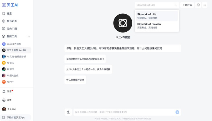 「天工大模型4.0」o1 版和 4o 版正式上线