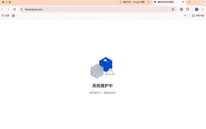 1 月 6 日,哪吒汽车官网无法正常访问,主页显示「系统维护中」。