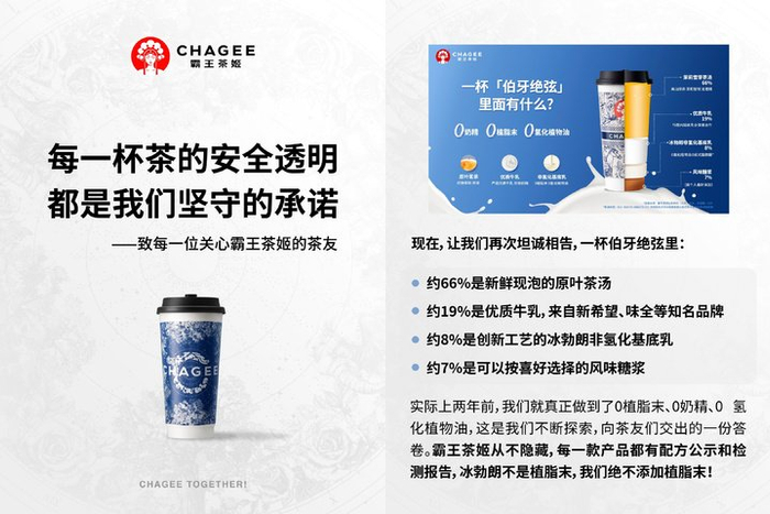 霸王茶姬回应冰勃朗事件:产品中不添加植脂末