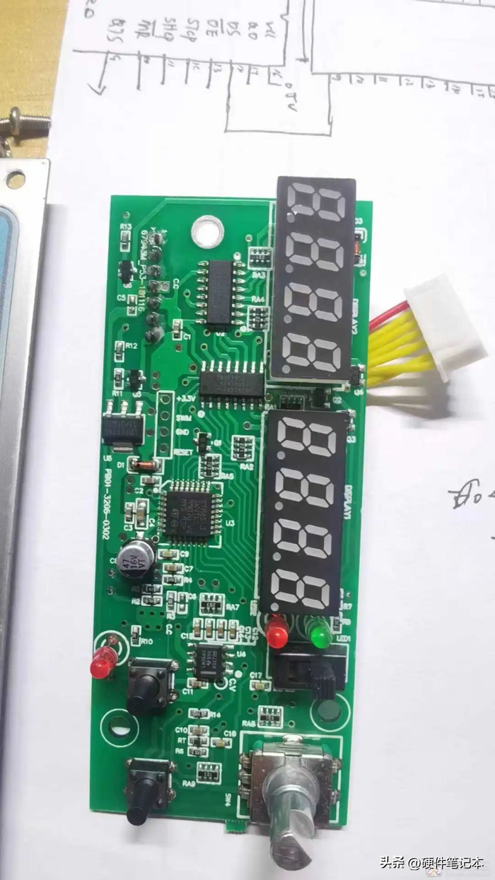 MCU输出两路16bitPWM,经过RC滤波后进入358运放跟随器,提高电流输出能力。当最大占空时候,LM358输出的电压最高为3.3V。所以没有面板的或者面板不对的,可以用变阻器代替面板调压调流。