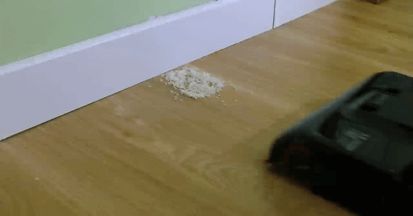 而这一项技术的实际效果,我也是专门进行了相应的测试,直接把大量颗粒倒在墙边位置,回拉过程中前机械臂刮条快速下降,将颗粒物全部吸走,这清洁效果真的十分惊艳。