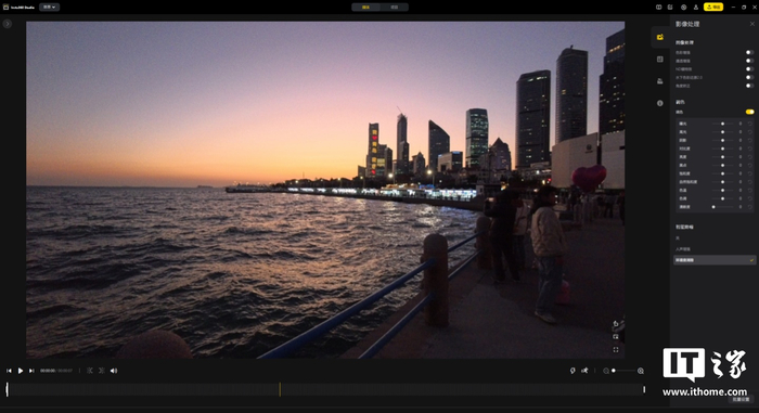 配合 PC 端的 Insta360 Studio 软件,我们可以对视频进行调色、调整智能降噪、角度矫正等功能的设置。