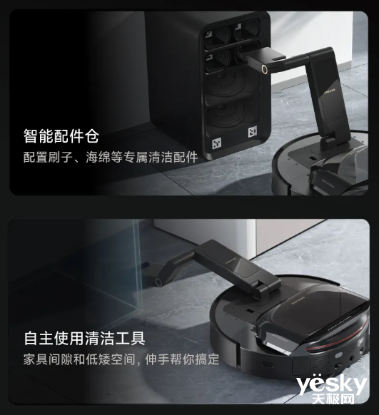 对于这个难题,追觅则打造了全球第一款有配件仓、且可自主使用清洁工具的扫地机器人,就跟我们平常会使用不同的清洁工具去处理脏污情况一样。