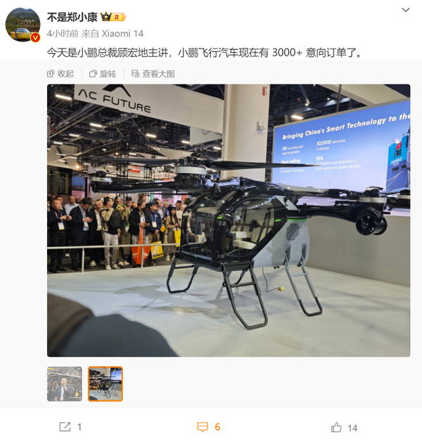 【CNMO科技消息】1月7日至10日,全球顶尖科技盛会CES在美国拉斯维加斯举行,吸引了众多国际企业参展,其中包括中国汽车品牌小鹏和极氪。据现场博主报道,小鹏汽车总裁顾宏地在会上透露,小鹏已进入全球30个国家和地区市场,2024年海外销量占比达到13%。此外,他还分享了一个消息,即小鹏飞行汽车目前已收到超过3000份意向订单。