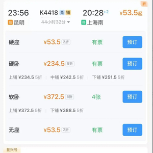 昆明到上海火车票打2折仅53.5元 为啥这么便宜