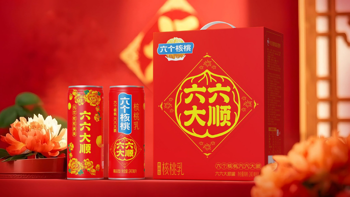 本次新春的礼盒包装,设计上融入中国传统的节日元素,如红色与金色的搭配、象征团圆与美好的图案,烘托出佳节的热闹和喜庆气氛。围绕着“六六大顺”与“和和美美”的祝福,提供了亲朋好友间互赠好彩头的情感,将“春节送礼=六个核桃=六六大顺”的品牌联想深植消费者心中。