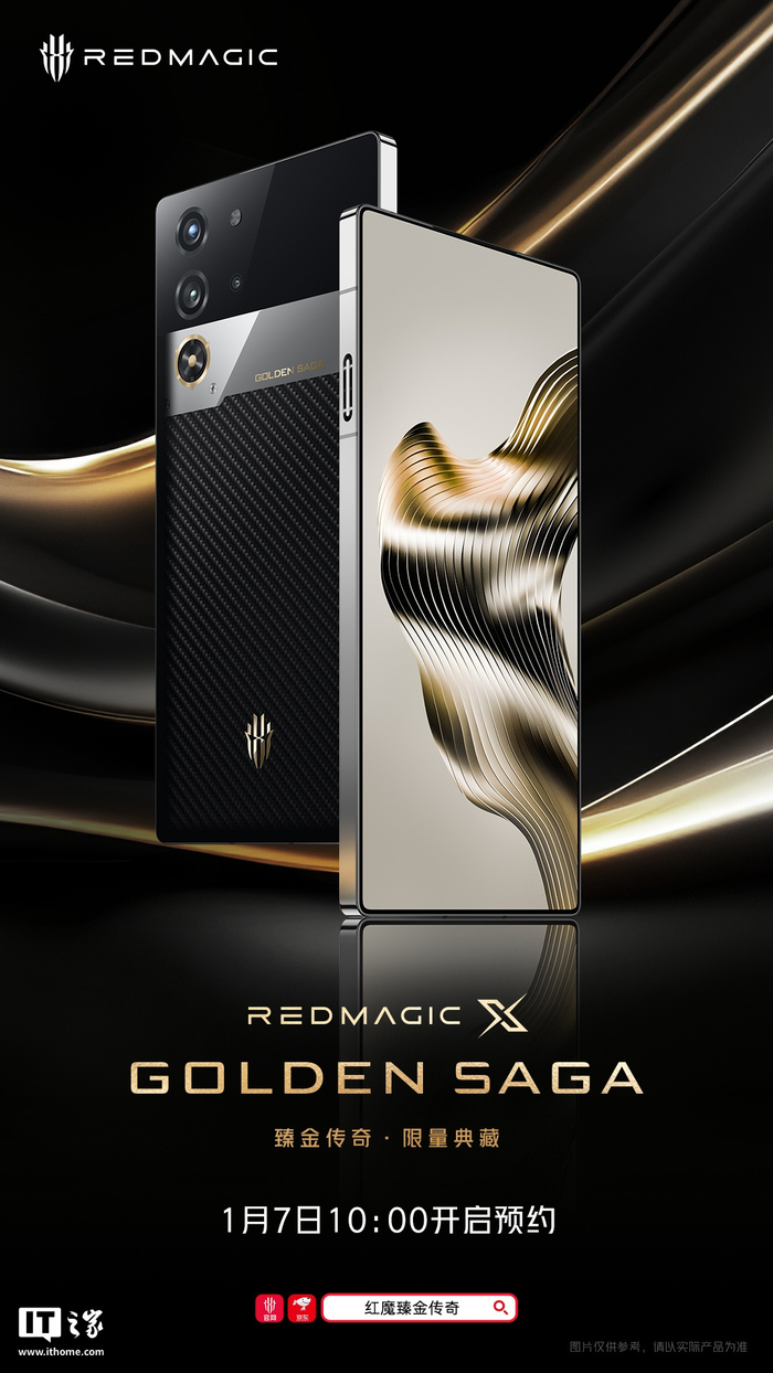 另外,红魔 X GoldenSaga 手机于本月(1 月 7 日)正式开始预约,宣称“臻金传奇・限量典藏”,24GB+1TB 版本售价 9699 元。