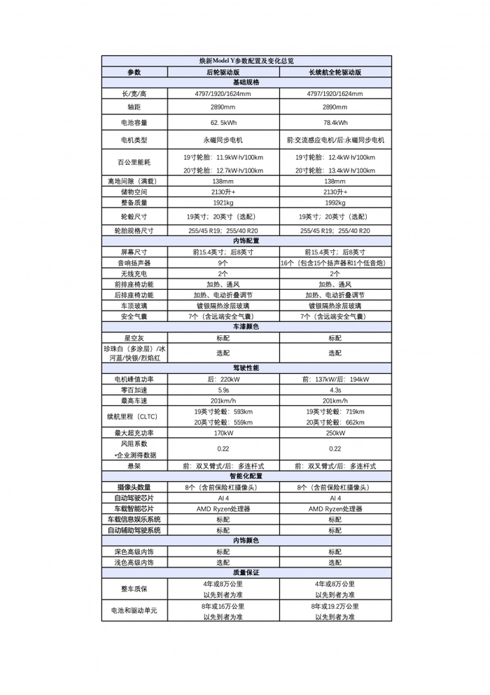 以下为焕新Model Y参数配置: