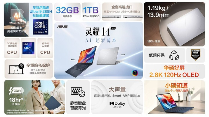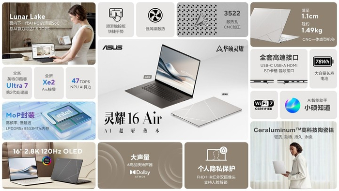 华硕发布 2025 灵耀笔记本,AI 和 Air 全都要