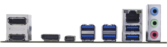 1 个 HDMI 2.1、2 个 DP 1.2、4 个 USB-A 10Gbps、2 个 USB2.0、1 个 2.5GbE RJ45、1 组音频插孔、1 个 PS/2 键鼠通用接口。