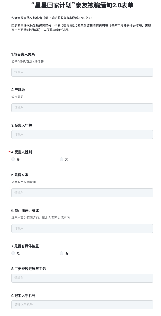 截止到今天,已经有超过 1700 份求救信息登记,还有更多的被电诈非法拘禁的家庭,源源不断地加入这次颇有声量的抱团取暖中。