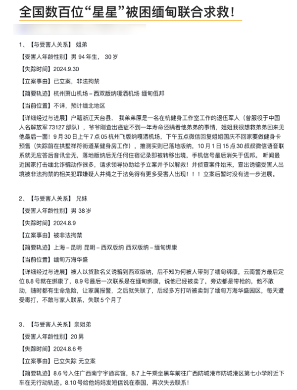 而就在这个信息传到国内的同时,一个统计被困缅甸受害同胞的求救文档,在多个家属互助群内传播。