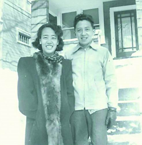 闵恩泽和陆婉珍在美国的住所前合影。