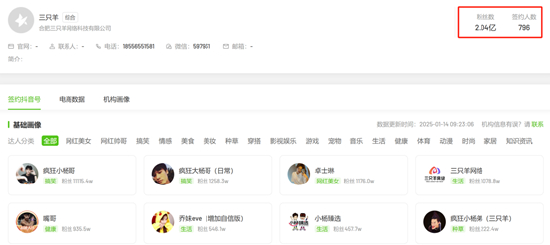 随着多名头部主播逐步以个人身份出现,与三只羊网络深度绑定的千万级粉丝账号只剩下疯狂小杨哥、疯狂大杨哥、卓仕琳、三只羊网络、嘴哥5个。而根据三只羊网络官网,公司旗下的千万级达人数量一度超过10个。