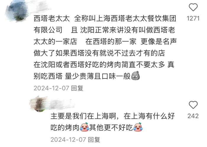 巧合的是,故事内核紧贴大东北的西塔老太太实则也是一家上海公司,全称叫上海西塔老太太餐饮集团有限公司。眼瞅着东北烤肉摇身一变成为上海系,上海网友迷糊了,“上海啥时候还有烤肉文化了?难道是烧鸟?”