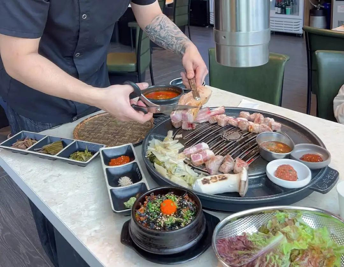 前段时间有网友前去大快朵颐,点完肉划拉着菜单想点些小菜解腻,结果看到了一些本该出现在沪市、由最近韩国顺产头(意指韩男)买单的价格: