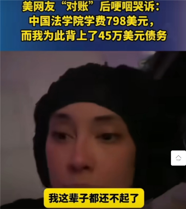 比如一位美国网友在与中国网友“对账”后大破防,她语带哽咽地说:“中国法学院学费一年798美元(约合人民币5850元),而我为此背上了45万美元(约合人民币330万元)的债务。” 巨额贷款加上利息,她哭诉道,我这辈子都还不起!