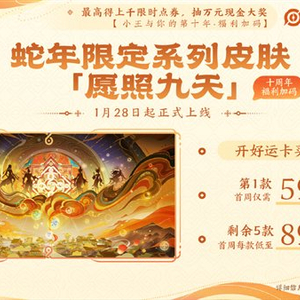 快科技1月18日消息,今天《王者荣耀》正式公布了蛇限皮肤,共计6款,将于1月28日(除夕)起正式上线。