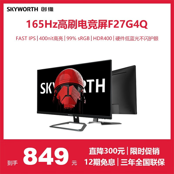 165Hz刷新率+HDR400!创维F27G4Q显示器749元抢