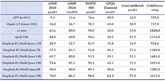 “我们在开源 DeepSeek-R1-Zero 和 DeepSeek-R1 两个 660B 模型的同时,通过 DeepSeek-R1 的输出,蒸馏了 6 个小模型开源给社区,其中 32B 和 70B 模型在多项能力上实现了对标 OpenAI o1-mini 的效果。”