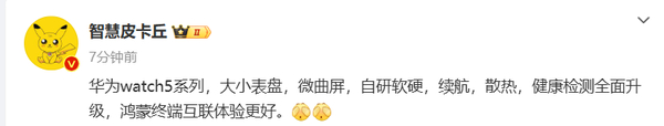 根据爆料人士透露的消息,华为WATCH 5系列将沿袭华为智能手表一贯的大小表盘设计,并在软硬件层面实现全面升级。另外,华为WATCH 5系列将搭载微曲显示屏幕,采用更多自研技术,并进一步优化散热和健康检测功能,鸿蒙终端互联体验也将得到升级。