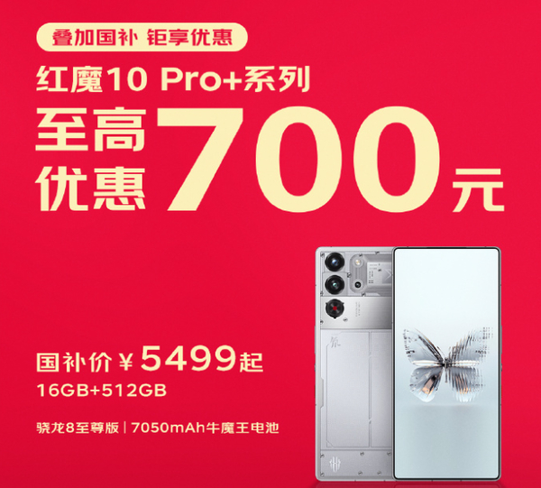 1月23日,红魔游戏手机官方宣布,红魔10 Pro+ 16GB+512GB版本主动从6299元降价至5999元,叠加500元的国家补贴,实际价格来到5499元,比发布之初便宜了800元。