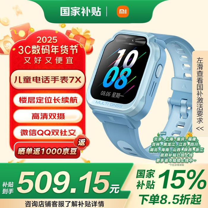 小米新品大促!小米米兔儿童手表7X 蓝色到手价481元