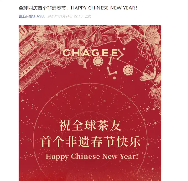 海外文案将春节写成Lunar New Year!网红奶茶霸王茶姬深夜紧急道歉