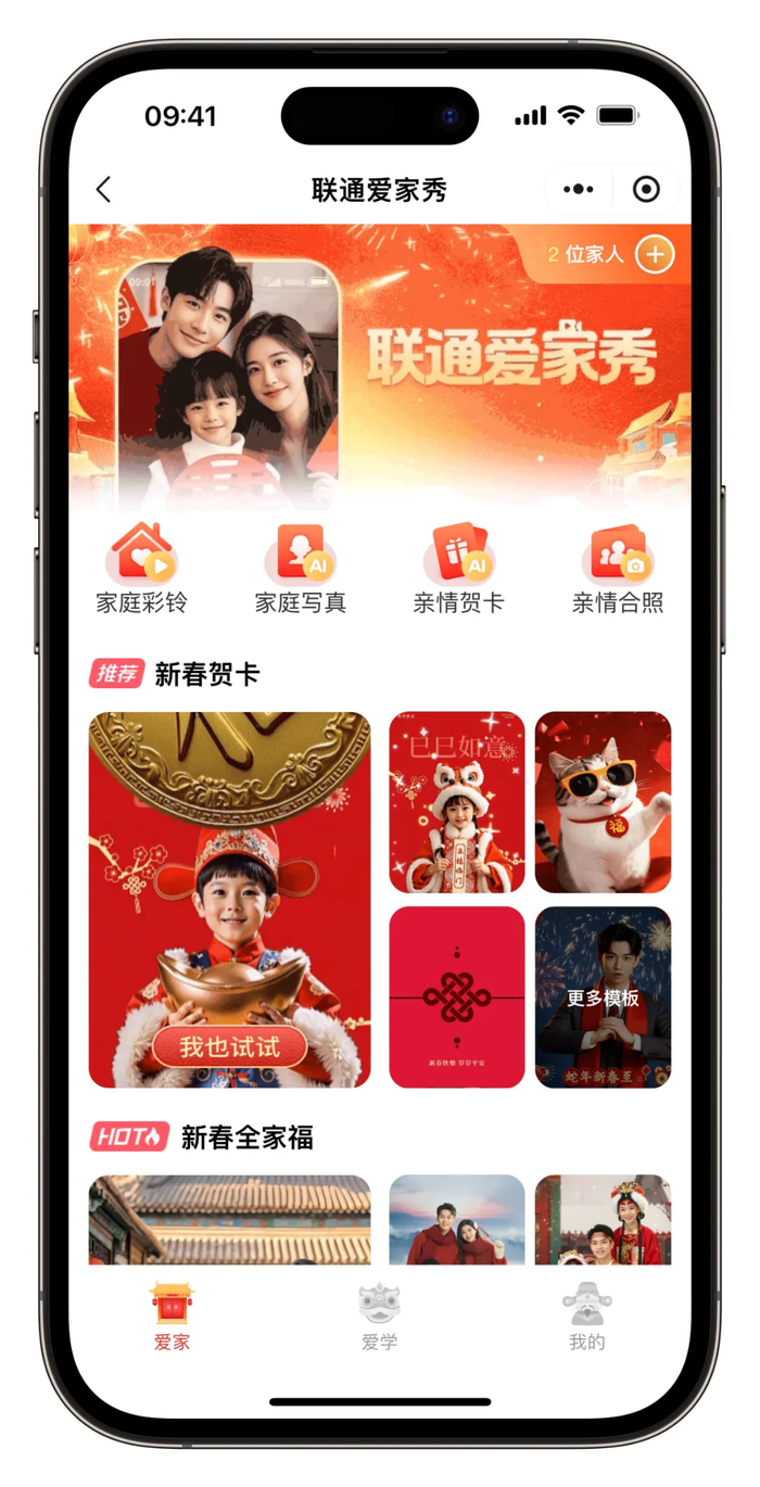 中国联通“爱家秀”上线:用“AI”伴你过春节,一站式服务尽享团圆时刻!
