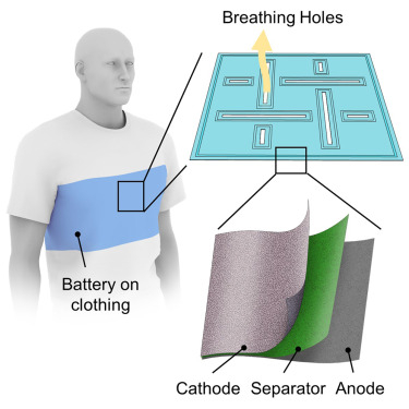 此外,这种新型“多孔”电池还表现出更好的抗温度波动和湿度变化能力。其透气性大约是棉织物的两倍。为了进一步测试“多孔”电池的性能,研究团队将其编织到实验服中,评估用户在跑步等轻度运动时的表现。结果显示,电池的设计显著提高了散热能力,并防止了汗液在设备下的积聚。