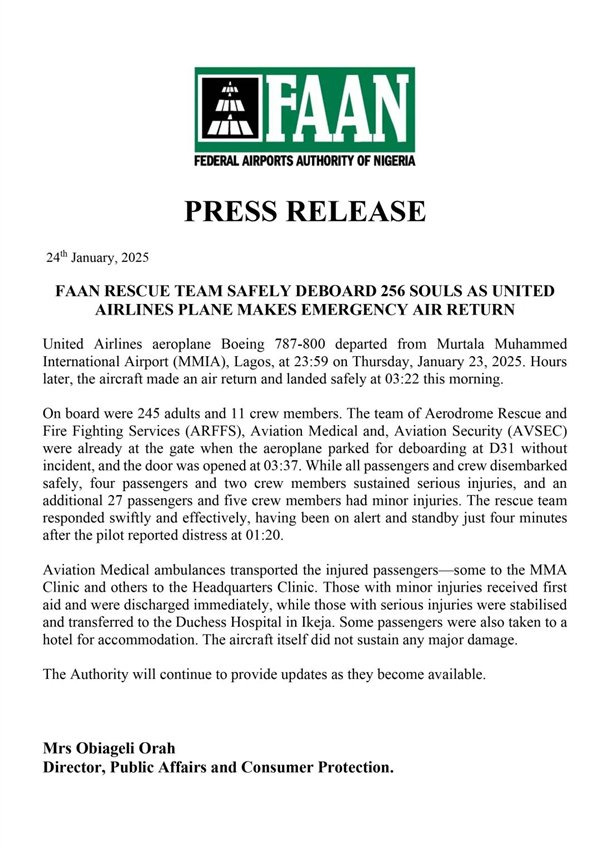 美联航表示,事故原因并非是剧烈的湍流引起,公司正与美国及尼日利亚的航空监管部门一起对事故原因进行调查。