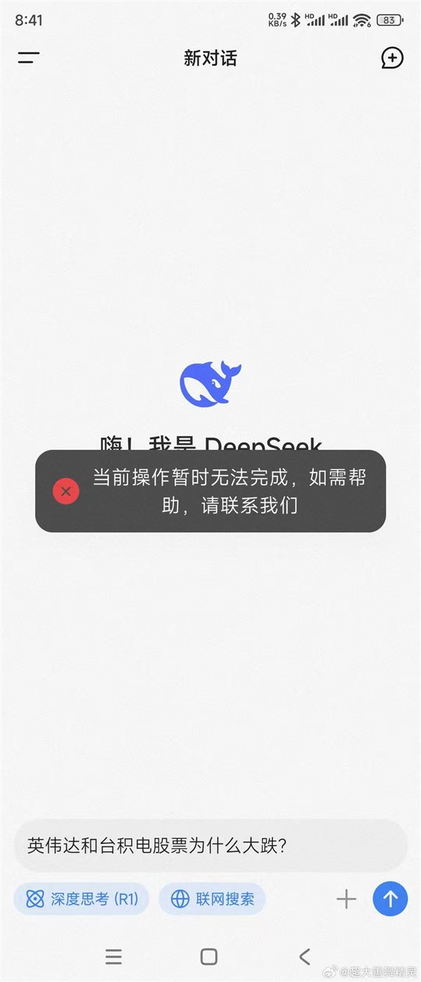 快科技1月27日消息,多位网友刚刚表示,DeepSeek崩了。