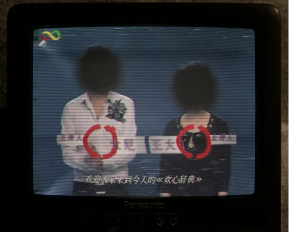 举个例子,当我拍到街道里“物体失重”的异常现象现象后,电视机播放的是一段让90后非常熟悉的智力问答节目“欢心词典”: