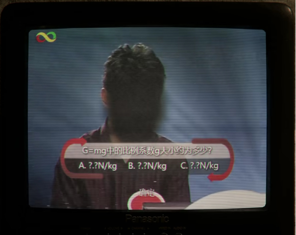 而节目里的问题也和无州出现的异象有关,问的是:物理公式G=mg中,重力系数g的数值是多少: