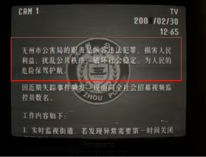 另外公告里招聘的所谓监视员,其要求是:“定期对着摄像头微笑打卡,证明自己是人”以及“实时监控街道,想方设法活到下班”。这些文案大有此前流行的另一亚文化“规则怪谈”的味道。