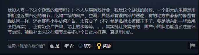 相信这也是玩家普遍在评论区反应《无人》的场景细节十分考究的原因之一: