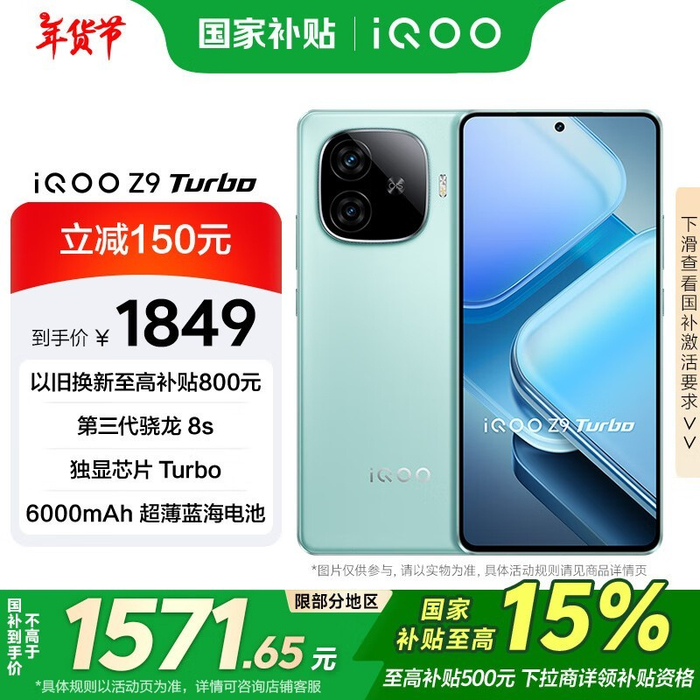 iQOO Z9 Turbo手机到手1700元 6000mAh大电池续航时间超长