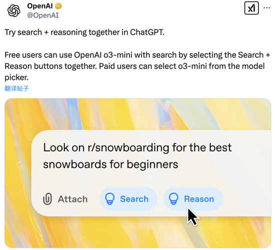 此前曾被社区贴脸对比DeepSeek有而 OpenAI 没有的深度思考 + 联网功能,这次也高亮加入:所有用户均可选择 “Search + Reason” 组合,利用搜索功能查找带有相关网络资源链接的最新答案。