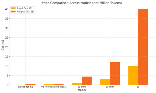 这个价格相比之前有了显著下降,比o1-mini低63%,比完整版o1更是降低了93%。然而即便如此,与DeepSeek R1输入和输出费用分别为每百万tokens $0.14和$0.55相比,仍然明显偏高。