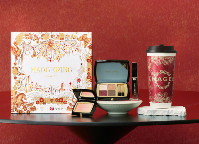 其中,MAOGEPING美承东方“新生青年计划伙伴”携手茶饮品牌霸王茶姬联合推出的全新四色眼影盘“焰影新愿”,呈现了对浏阳花炮非遗技艺中的色彩传承,将烟花中经典的银色、亮色、红色和青色,分别对应产品的打底色、点缀色、加深色和眼线色,四色可共簇成一朵绚丽的烟花,同时也构成了一套新年节庆妆容的解决方案。