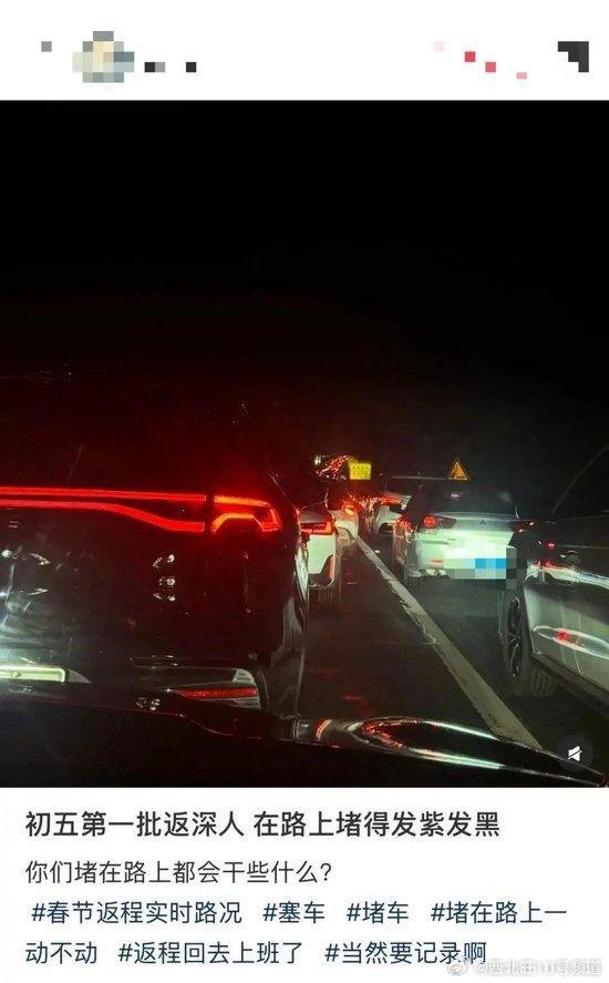 有网友表示,路上堵到黑的发紫。有人湖北返深,24个小时过去了,还在湖南;有人潮汕回深圳,开了整整七小时;提前返程的小伙伴也没好到哪里去,有人表示,18个小时的车程,已经练成铁屁股。