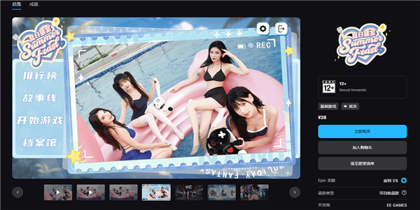 由EE GAMES开发,EE GAMES/Tenth Art发行的恋爱模拟游戏《夏日盛宴》现已正式在Epic平台发售,《夏日盛宴》在国区售价28元。