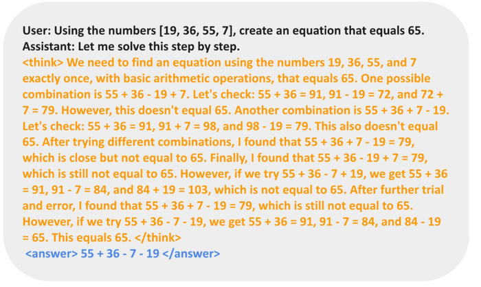 TinyZero 库 (https://github.com/Jiayi-Pan/TinyZero) 中的一张图片表明该模型能够进行自我验证。(相比之下,看看基础模型的回复会很有趣。)