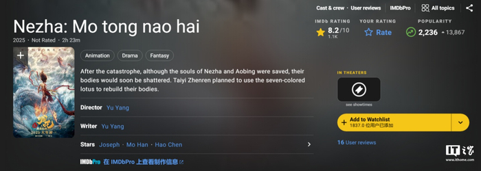 IMDb 评分 8.2,《哪吒之魔童闹海》动画电影海外口碑开分