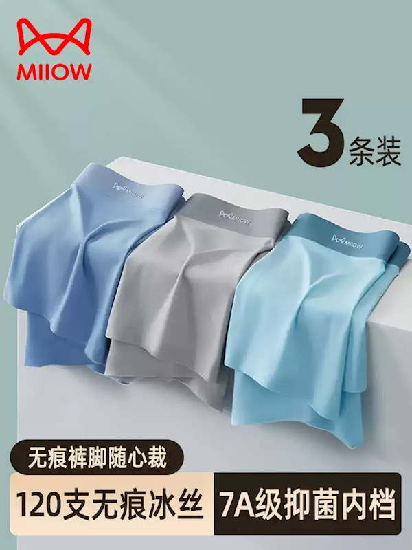 轻若无物 自由呼吸:猫人冰丝无痕内裤29.9元到手3条