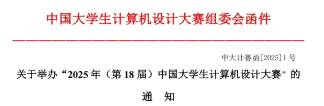 近日,中国大学生计算机设计大赛组委会下发了关于举办“2025 年(第18 届)中国大学生计算机设计大赛”的 通知。