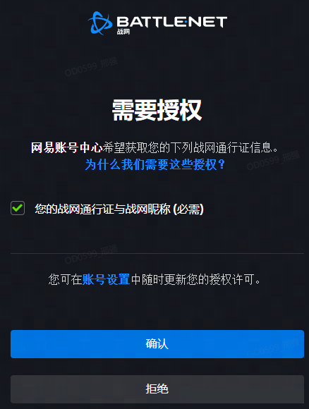 d. 登录待绑定的战网通行证,授权网易账号中心获取战网信息。