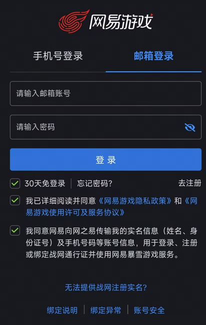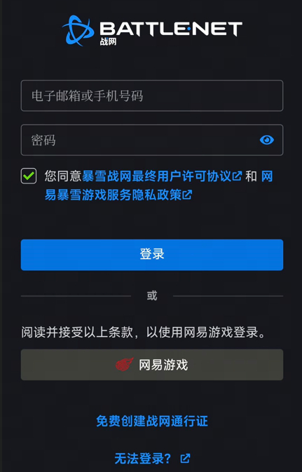 用户需要将战网通行证与网易账号进行绑定,并使用该网易账号才能登录游戏,未绑定将无法登录游戏。
