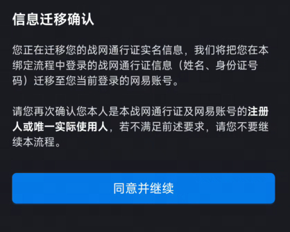 g. 确认网易账号实名信息已经从战网通行证迁移成功。